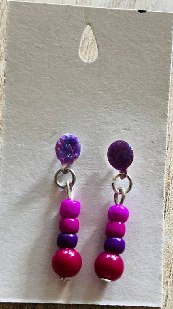 Oorsteker klein kraal kleur paars